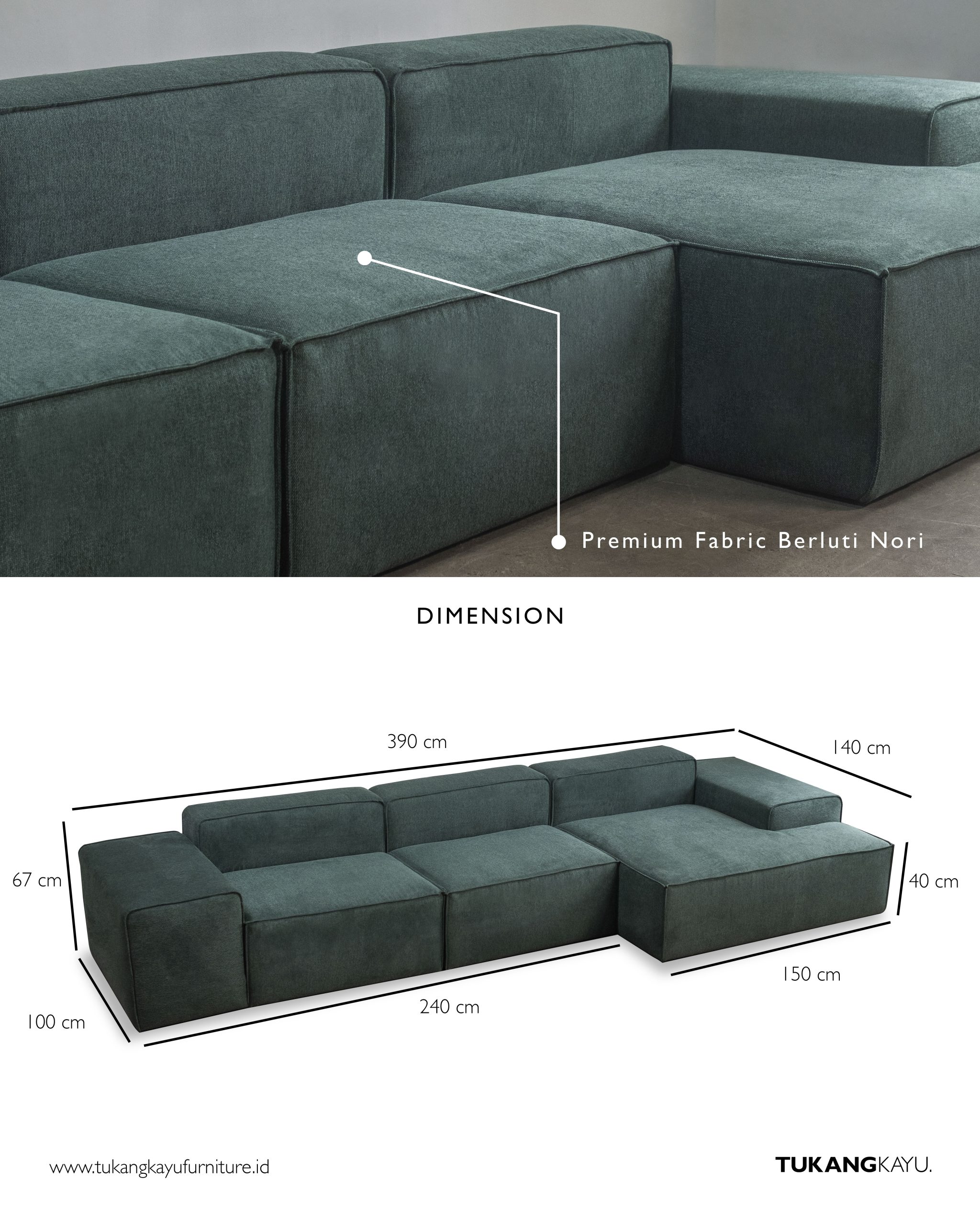 Dimensi: W 390 cm x D 100 cm x H 67 cm